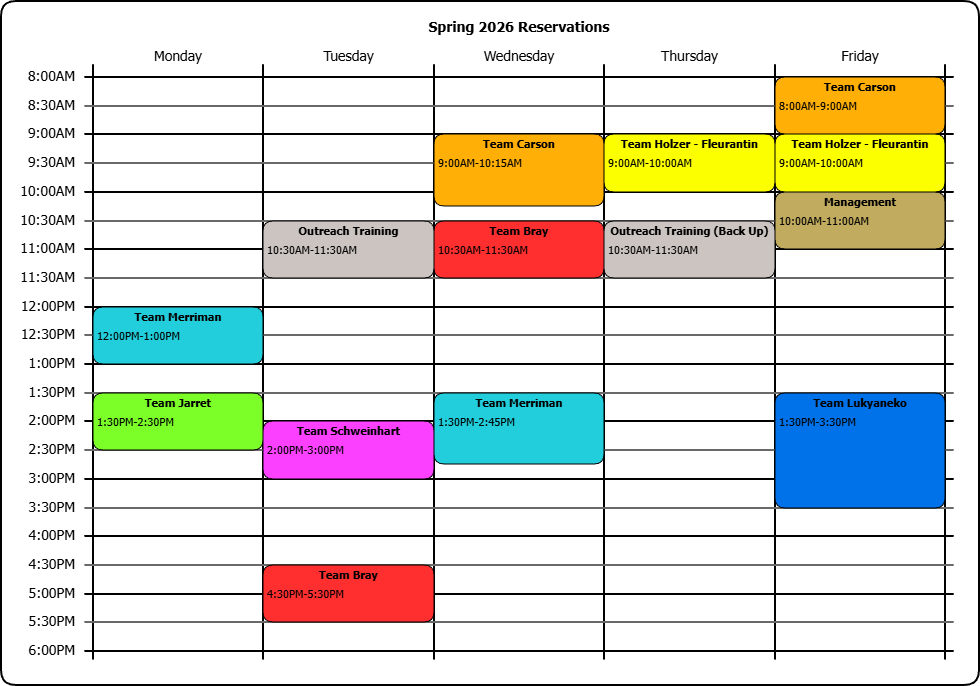 Mid-Semester Meeting – Date: Friday, March 6, 2026. Time: 10:00AM – 11:00AM EST. Location: Exploratory 3301 and Zoom.